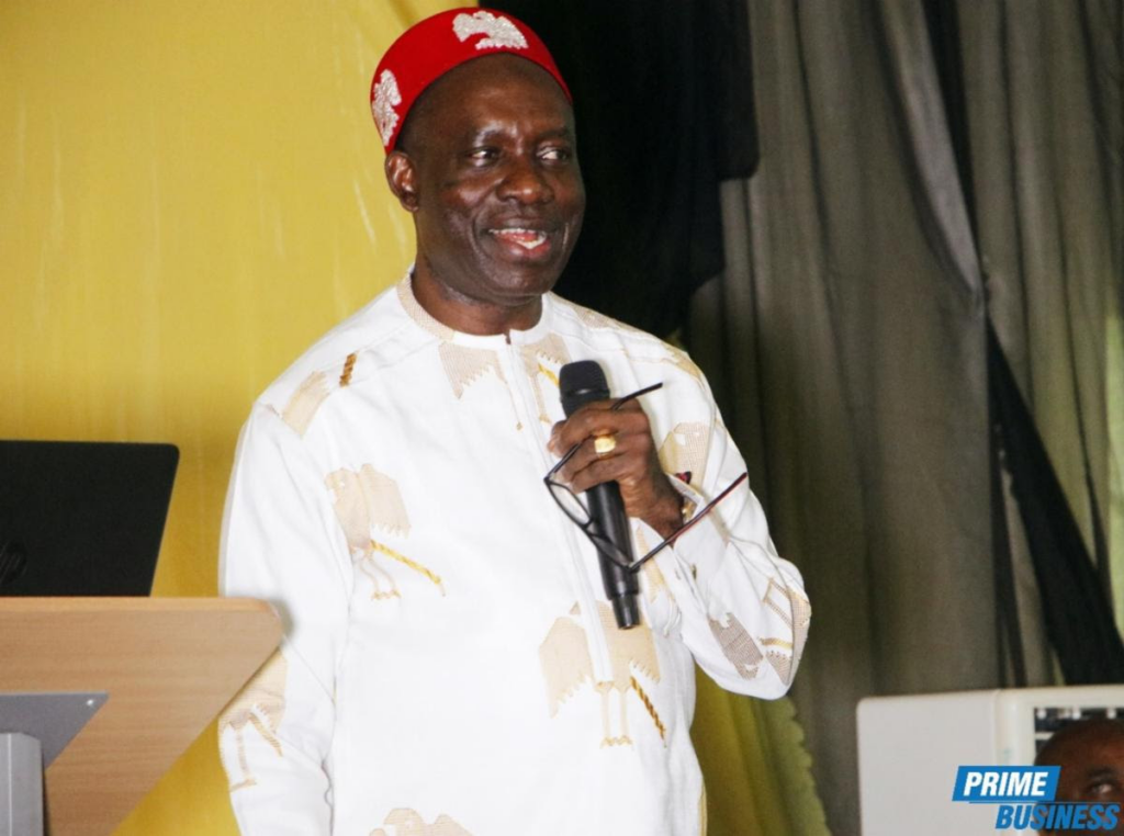 Barr. Charles Odunukwe, Chairman, giving his opening speech at the townhall meeting with Governor Soludo in Lagos, Thursday,22nd June 2023, at Collonades Hotel, Ikoyi Lagos.