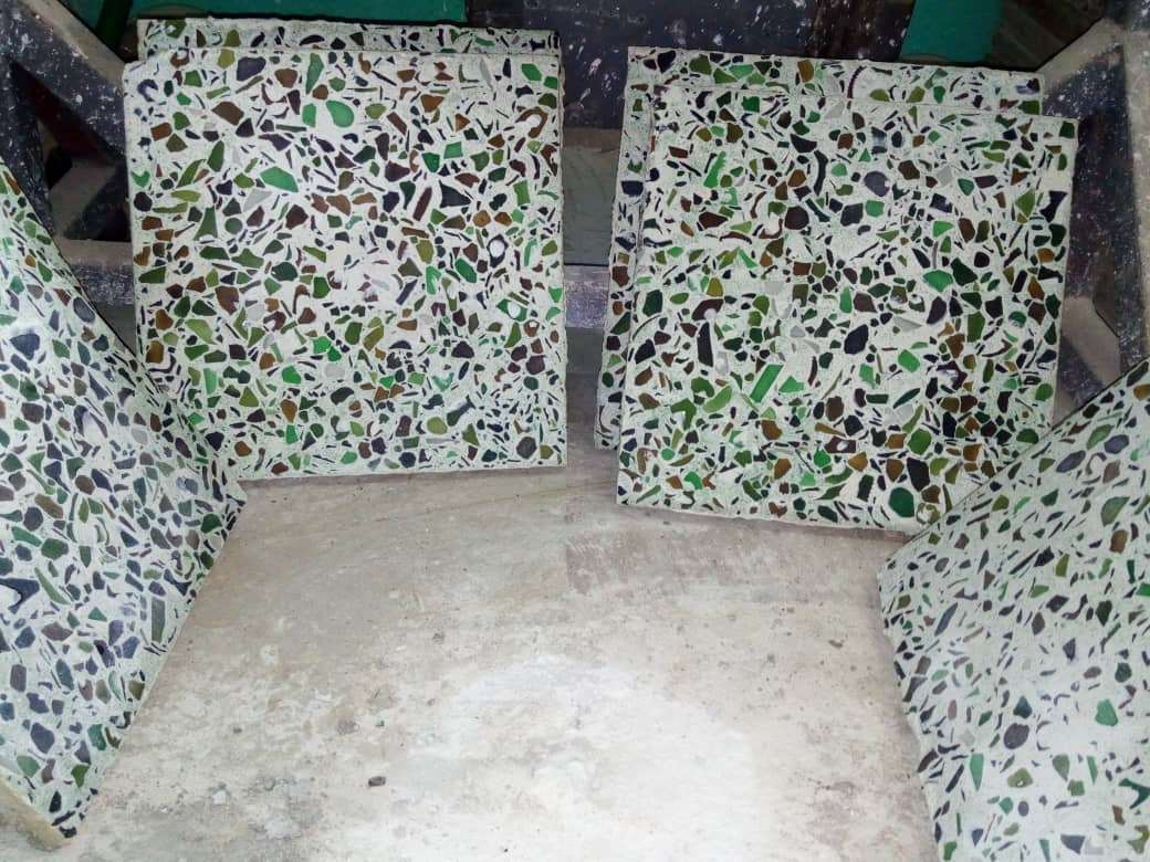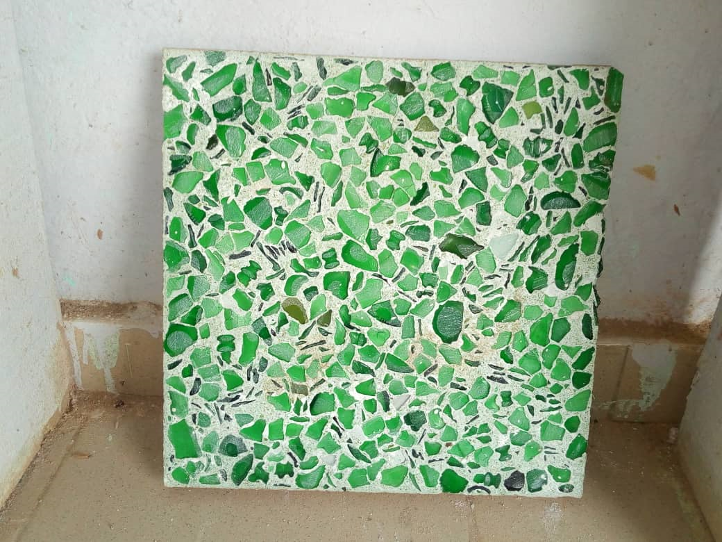 Kouassi Bleh Raoul-Ulrich un jeune doctorant de 30 ans en géo matériaux et technologies de l’habitat à l’université Félix Houphouët Boigny de Cocody, a développé une nouvelle catégorie de carreaux obtenue à partir de verres recyclés grâce à technique développée à partir de recherches en laboratoire.